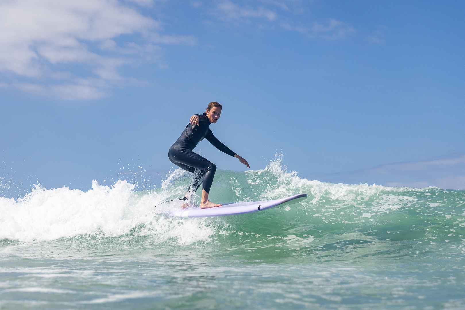 Nous avons également des planches plus performantes : des évolutives et des shortboards sont présentes dans notre rack de surf. Ces planches sont destinées à des surfeurs d’un niveau intermédiaire à expérimenté. Dans le nord de la baie de Pors Carn, où les vagues sont parfois plus creuses, ces planches sont idéales.